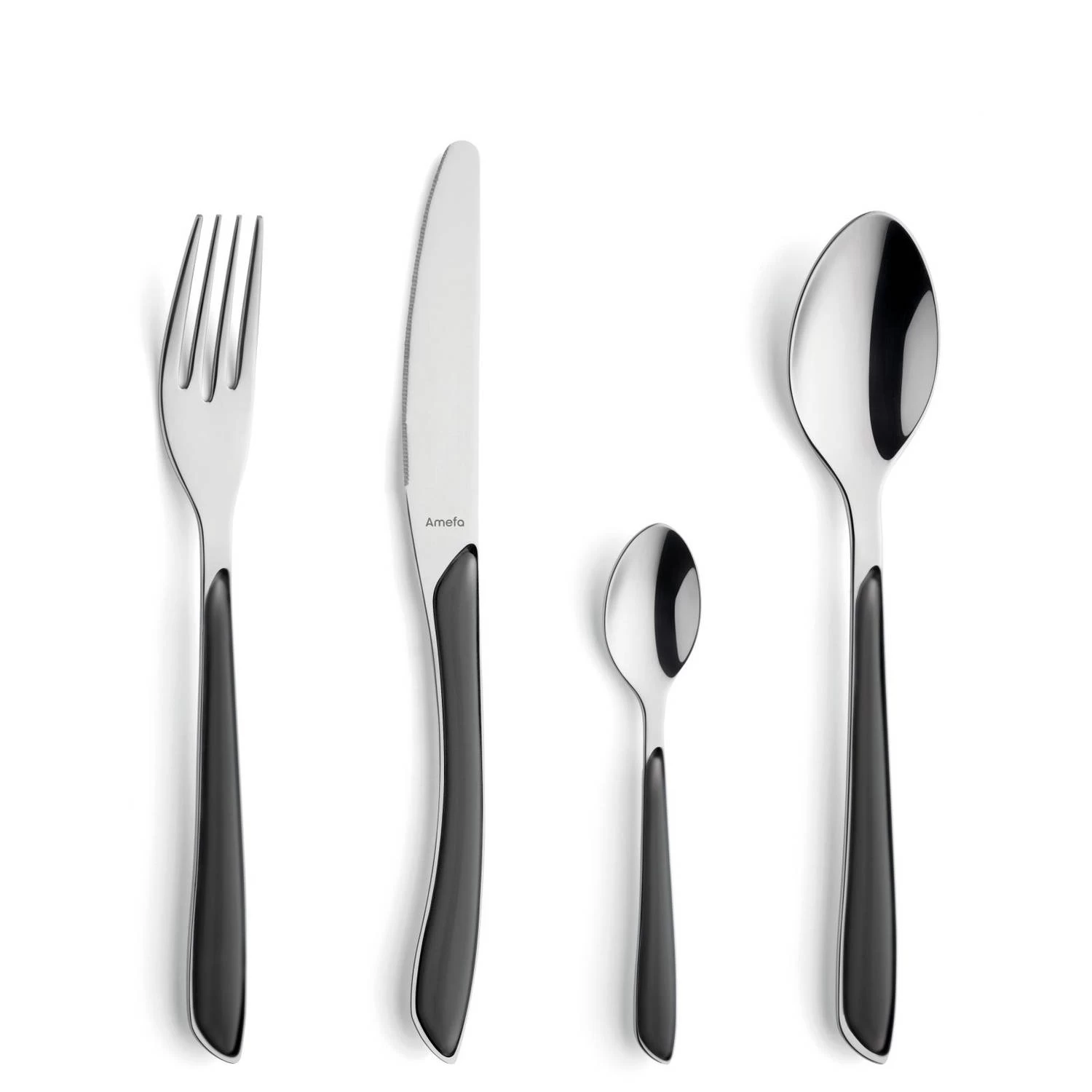 Het Eclat bestek van Amefa is de ideale keuze wanneer je de eettafel een glansrijke twist wil geven. Het handvat, met een unieke vormgeving en hoogglans afwerking, geeft dit bestek een moderne en eigentijdse uitstraling.