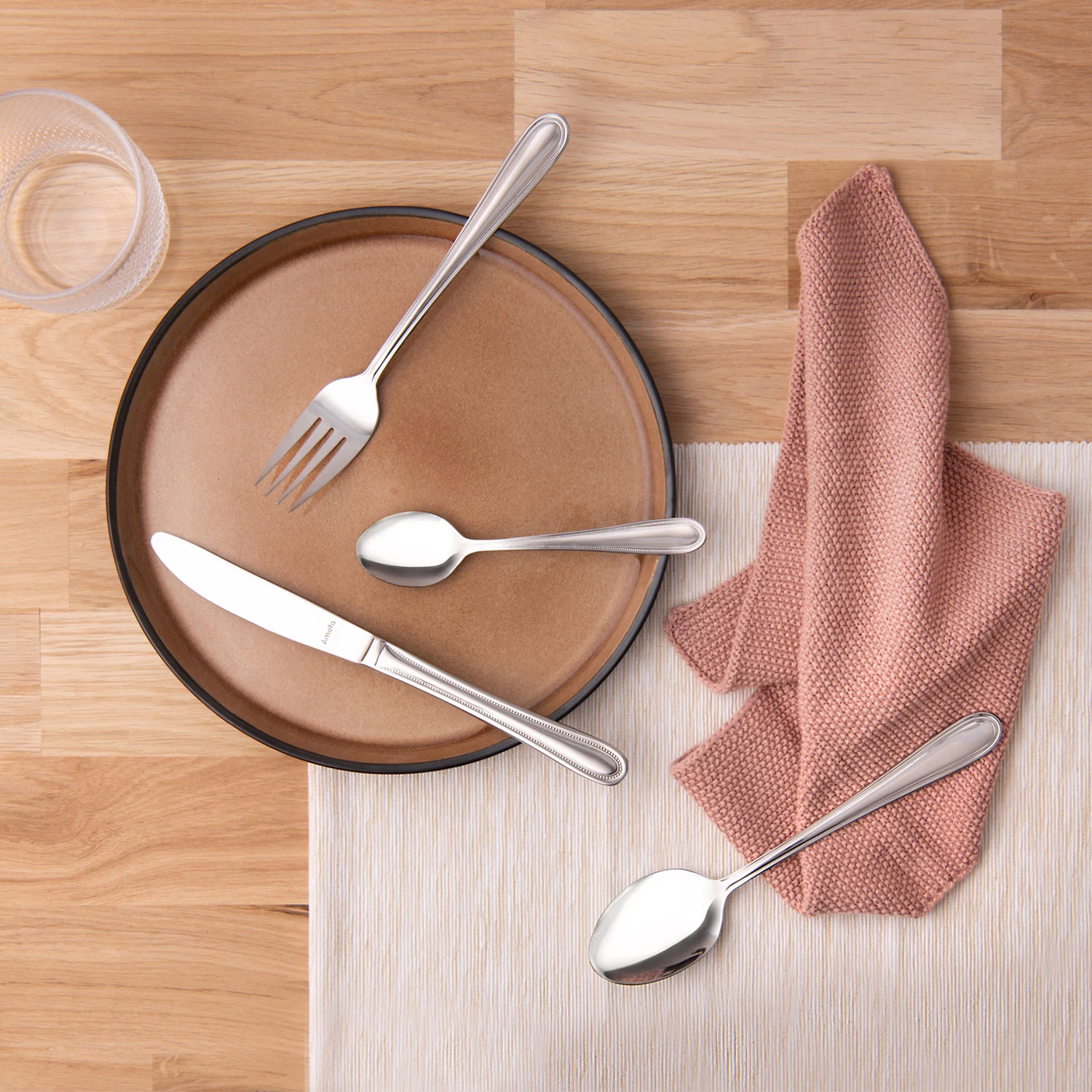 Met deze Amefa Pearl bestekset haal jij in één keer bestek voor 6 personen in huis! Het bestek heeft een klassiek model, met rondom het heft een decoratieve rand welke een rij parels vertegenwoordigd. Deze Amefa 24-delige bestekset bestaat uit de volgende onderdelen: 6 tafelmessen, 6 tafelvorken, 6 tafellepels en 6 koffielepels.