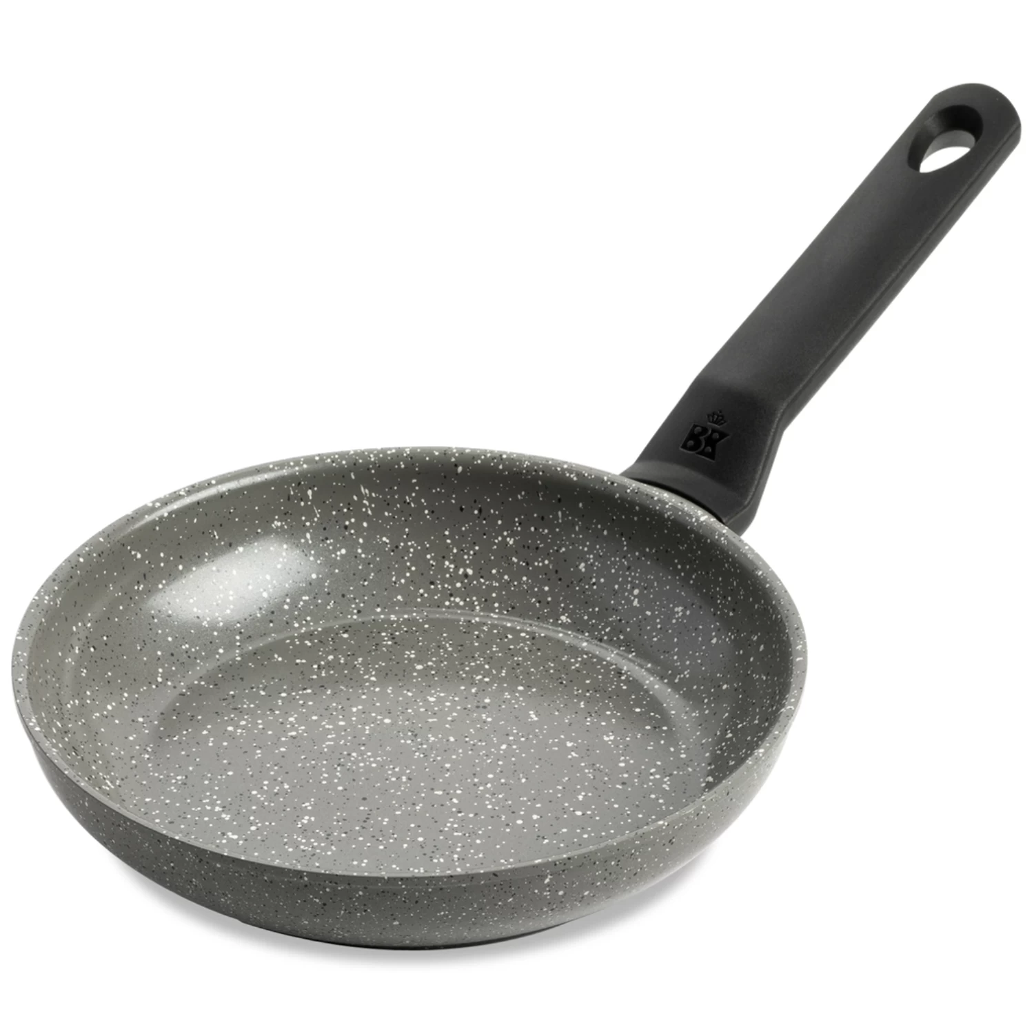Gezond bakken op alle warmtebronnen met de BK Granite koekenpan Ø24 cm. De hippe stonelook coating en een stevige kunststof greep maakt deze pan een opvallende verschijning op elk fornuis. De hoogwaardige keramische non-stick coating (vrij van PFAS) kan tegen een stootje en is perfect voor het bakken of braden zonder of met weinig oliën of vetten.