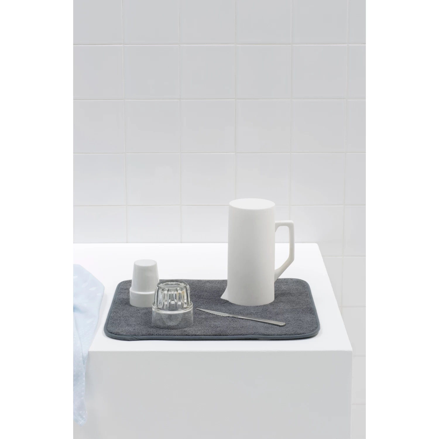 De vaat drogen en je aanrecht droog houden zonder ook maar een vinger uit te steken? Gebruik de Brabantia SinkSide Microvezel Afdruipmat! Deze opvouwbare mat absorbeert 7 keer zijn gewicht aan water. En hij is zacht, dus minder kans op scherven. Klaar? Laat de mat drogen en vouw hem daarna op, of doe hem in de wasmachine. Vaattastisch!
