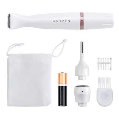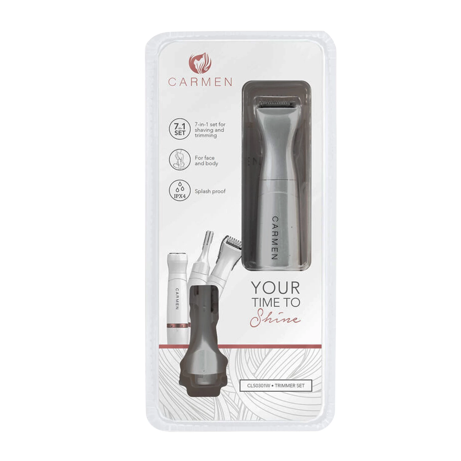 Houd uw haar altijd perfect verzorgd met de Carmen Trimset 7-in-1! Deze veelzijdige set bevat zeven verschillende opzetstukken, waaronder een tondeuse, neustrimmer, oortrimmer, precisietrimmer en drie verschillende baard- en haartrimmers. De set is draadloos en werkt op een krachtige oplaadbare batterij, waardoor u de set gemakkelijk en overal kunt gebruiken. De trimset is voorzien van scherpe en duurzame messen die zorgen voor een nauwkeurige en comfortabele trimervaring. Het ergonomische ontwerp van de set ligt comfortabel in de hand en maakt het gemakkelijk om elke gewenste look te creëren. Voeg deze alles-in-één Carmen Trimset 7-in-1 toe aan uw persoonlijke verzorgingsroutine en geniet van een professionele look zonder de kosten en het gedoe van een kappersbezoek!