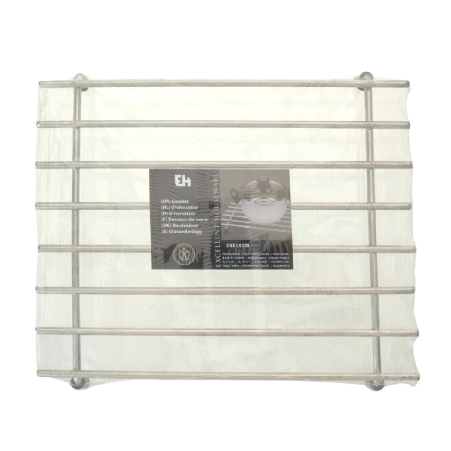 Plaats zodra het eten klaar is de pannen op een Excellent Housware pannenonderzetter en geniet van de maaltijd. De onderzetter is gemaakt van RVS en gaat lang mee en is goed schoon te houden. Afmeting: 24 x 19 cm.