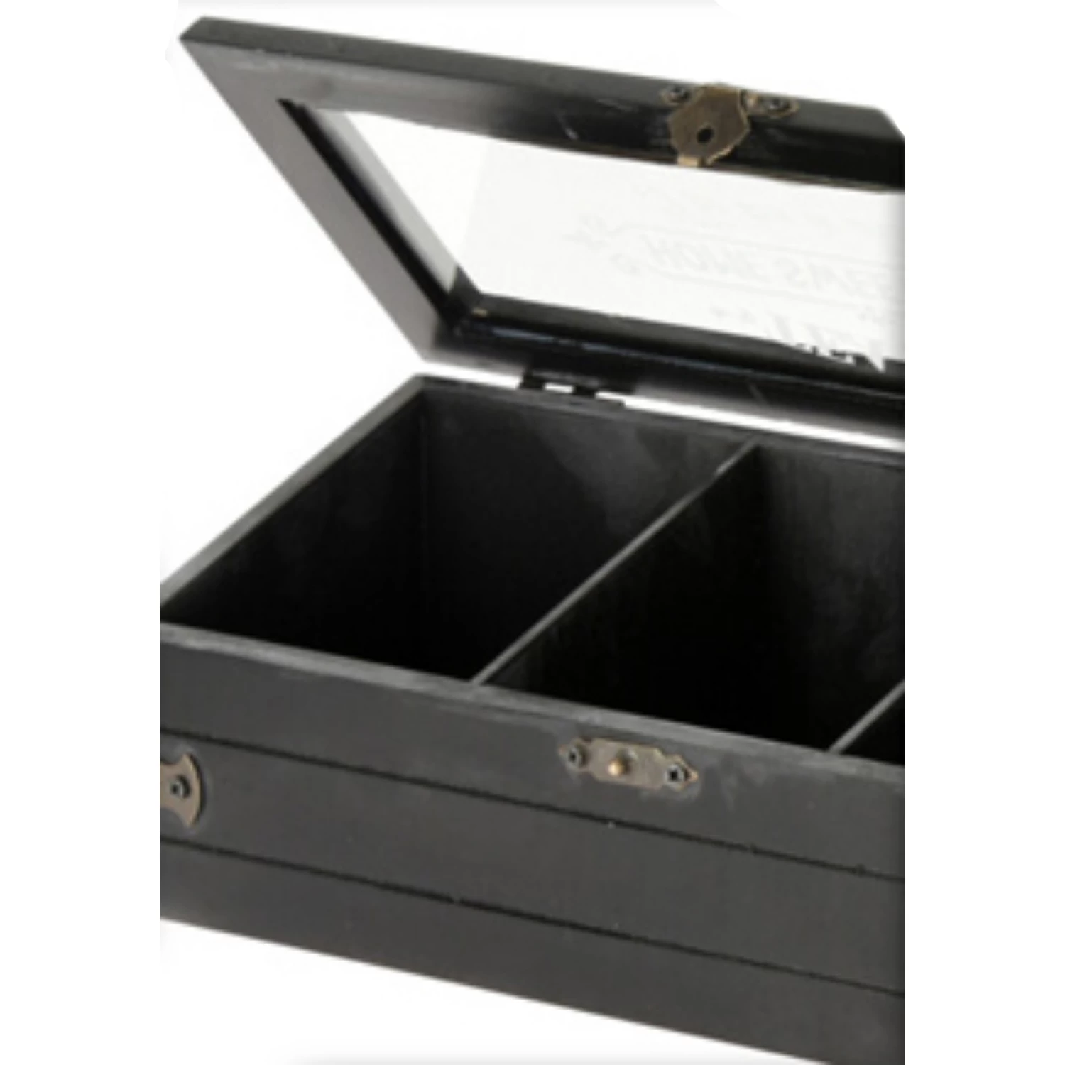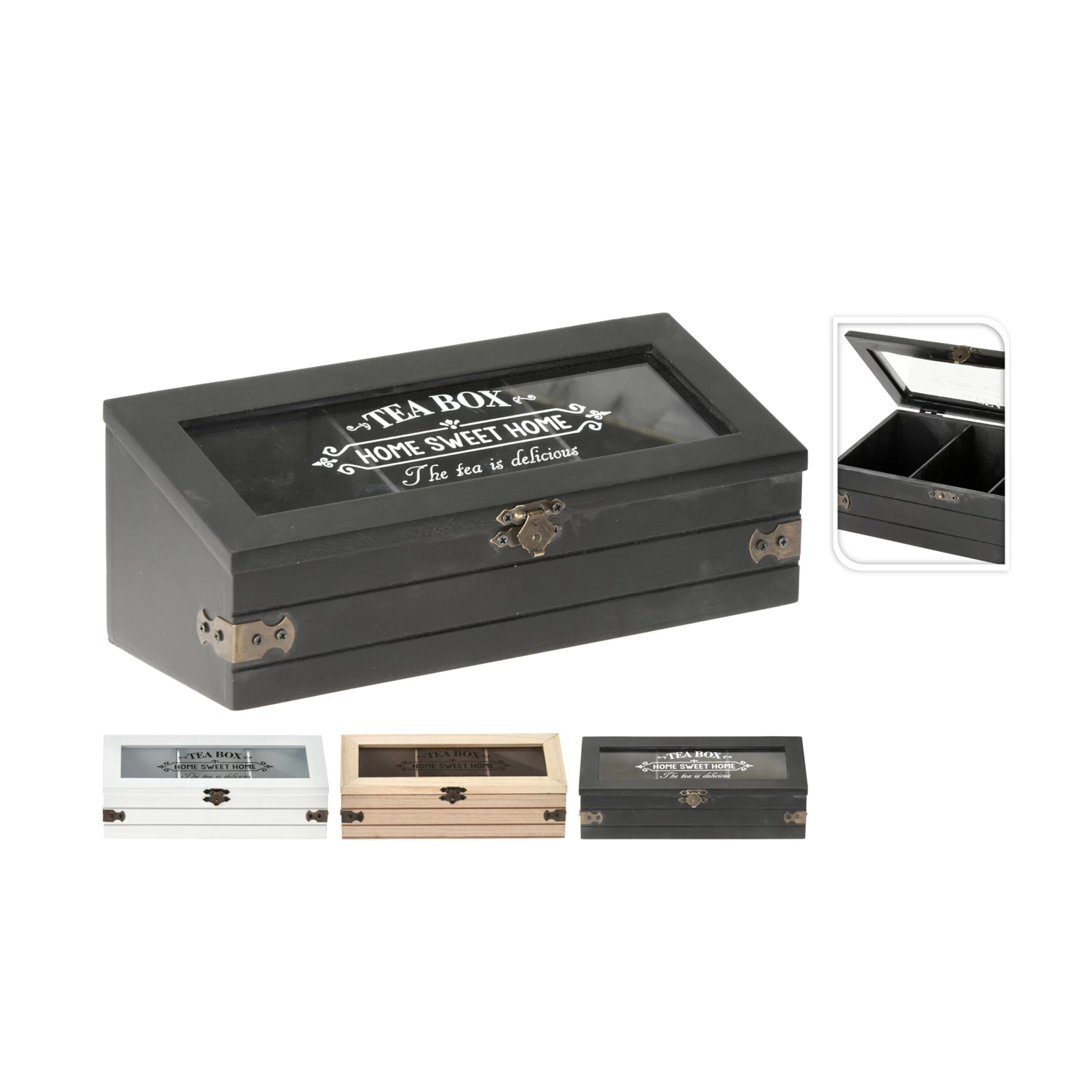 Bewaar en serveer je thee in stijl met deze houten theedoos van Excellent Houseware. De theedoos heeft 3 vakken en een transparant deksel van glas. De theedoos is er in 3 kleuren, wit, beige en antraciet.
