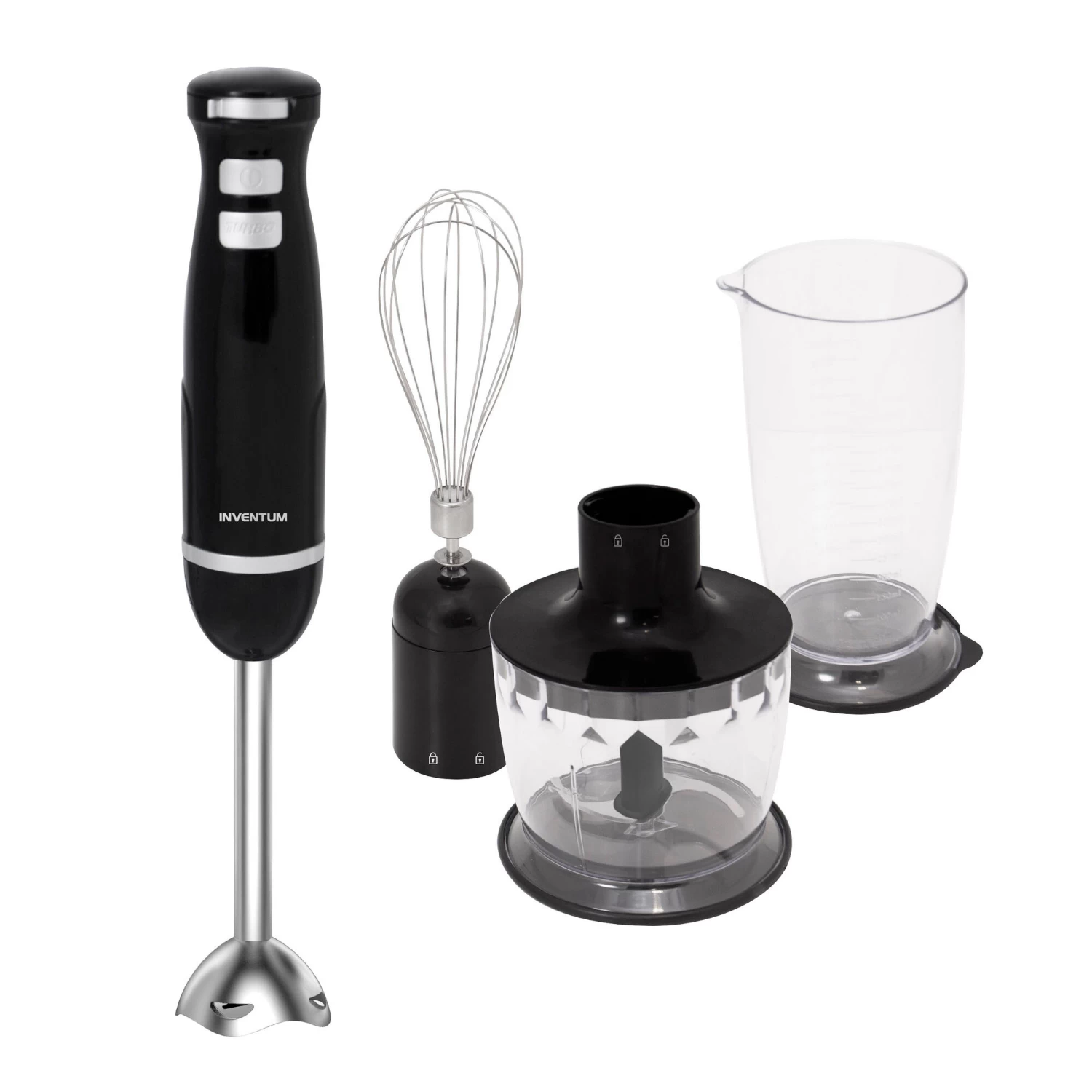 Met de staafmixer set van Inventum kun je mixen, mengen, kloppen en hangen. De complete set van keukenhulpjes bevat naast de staafmixer een hakmolen, garde, maatbeker en een ophangbeugel. De mixer heeft een vermogen van 600 watt en heeft naast de traploze snelheidsstanden een turbo-stand. Door deze ingedrukt te houden, mix je nog sneller.