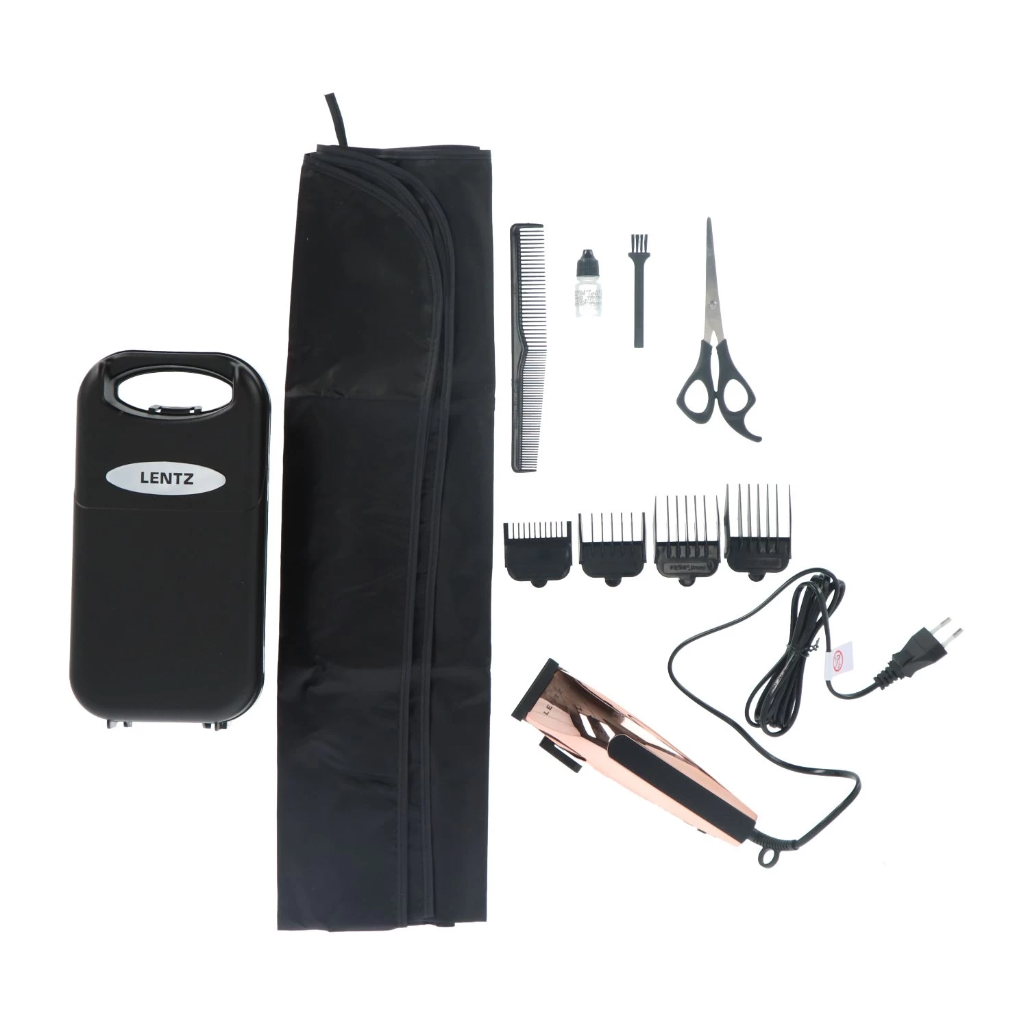 Met deze tondeuse van Lenz is het mogelijk professioneel en nauwkeurig het haar te knippen. De trimmer heeft een stille motor zodat het gebruik erg comfortabel is. DE messen zijn zelf scherpend en van RVS. Bovendien is de tondeuse uitgerust met 4 verschillende opzetkammen: 3, 6, 9, 12 mm. De set is compleet met schaar, kam, schoonmaakborstel, olie en kapmantel. En dit alles opgeborgen een praktische opbergdoos. Dus alles bij de hand tijdens het gebruik.