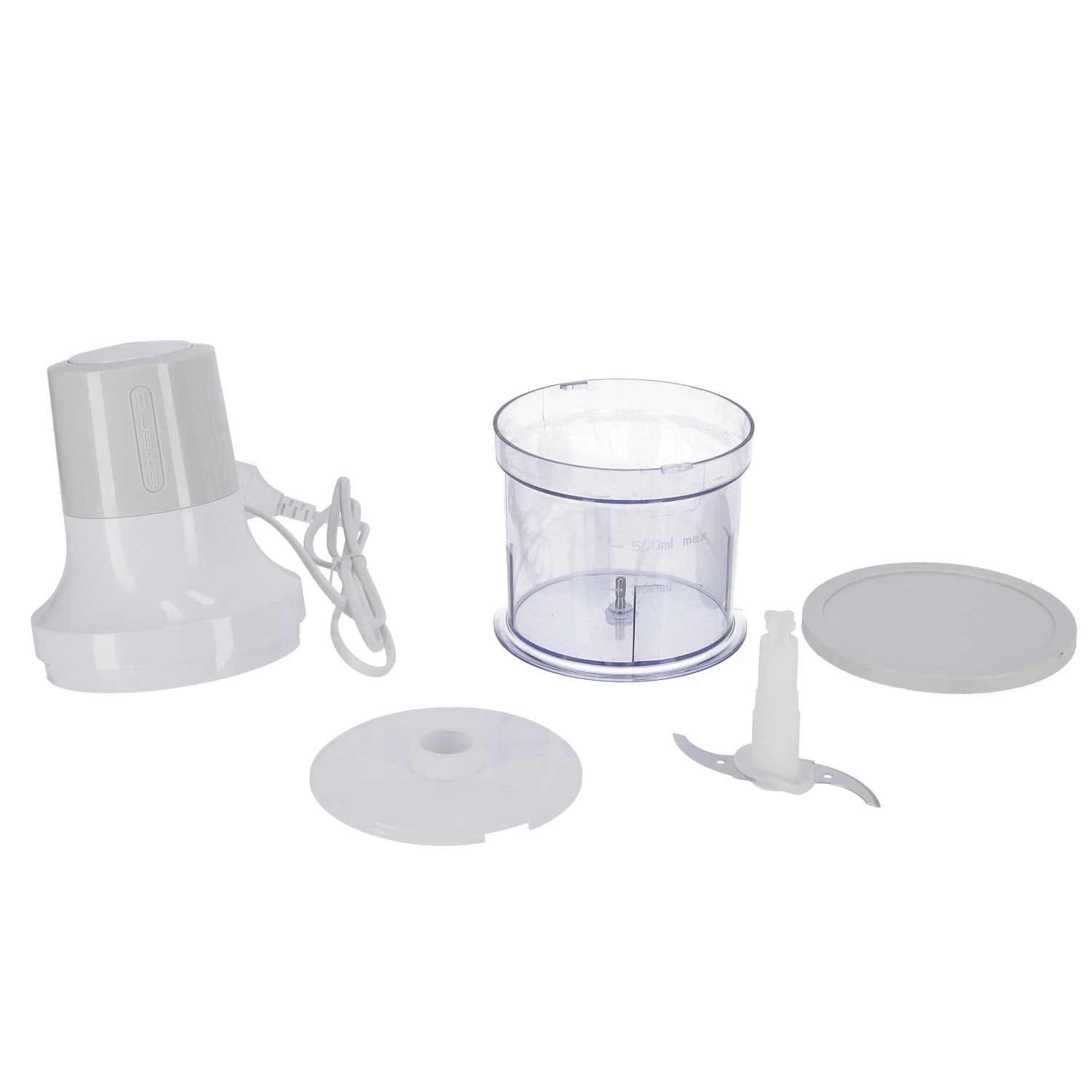 Met een power van 260 Watt is de Emerio MC-122646.1 Swiss Design Hakmolen uitermate geschikt voor allerlei noten, fruit en groenten. Waarom nog zelf snijden als het binnen enkele seconden voor je gehakt kan worden. Deze ideale keukenhulp heeft een grote startknop zodat hij heel handig te bedienen is. Druk kort op de knop om de messen kort te activeren en de ingrediënten grof te hakken. Houd de knop langer ingedrukt om een pasta of puree van de ingrediënten te maken. Met één druk op de knop produceert het RVS hakmes in de 0,5 liter blenderkom een vers gesneden groentemix, een smaakvolle saus of een vitaminerijke shake. De anti-slip mat past ook op de bovenkant van de hakmolen waardoor deze netjes af te sluiten is. Tijdens het hakken en mixen blijft de blender op zijn plaats dankzij de anti-slipmat. Deze compacte snijmachine is dus een stevig staande aanwinst voor elk aanrecht. Na het hakken van jouw favoriete ingrediënten met behulp van de Emerio MC-122646.1 Hakmolen is het schoonmaken geen probleem. De losse onderdelen zijn namelijk vaatwasmachinebestendig.