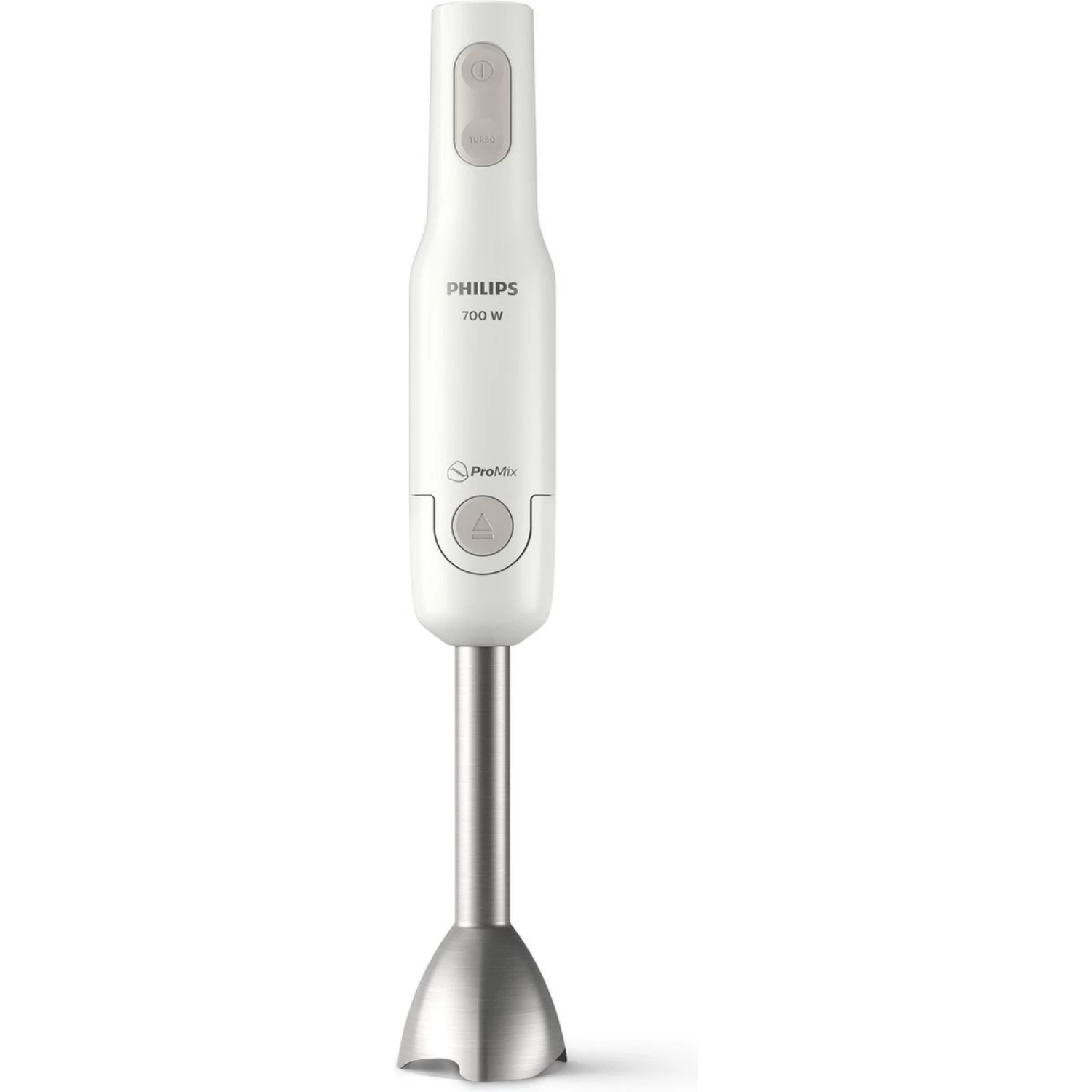 Mix en blend met de ProMix-staafmixer uit de Daily Collection van Philips. Met de staafmixer kun je snel en efficiënt mixen met 1 druk op de knop! Kies voor de normale snelheid of ga voor de turbofunctie. Deze functie is ideaal als het aangesloten zit op de XL-fijnsnijder, hiermee hak je heel eenvoudig de hardste ingrediënten klein. Switch naar de dubbele klopper om bijvoorbeeld luchtige pannenkoekenbeslag, taartbeslag of rijke sauzen mee te bereiden. De staafmixer heeft een krachtige motor van 700 W en een ergonomisch design. Daarnaast heeft de staafmixer een antispat mesbeschermer. Dankzij de speciale golvende vorm van het onderste deel voorkomt het opspatten en knoeien tijdens het mixen. De ProMix-technologie met een specifieke driehoekige vorm zorgt voor een optimale toevoer van etenswaren en maximale prestaties voor sneller en constanter mixen.