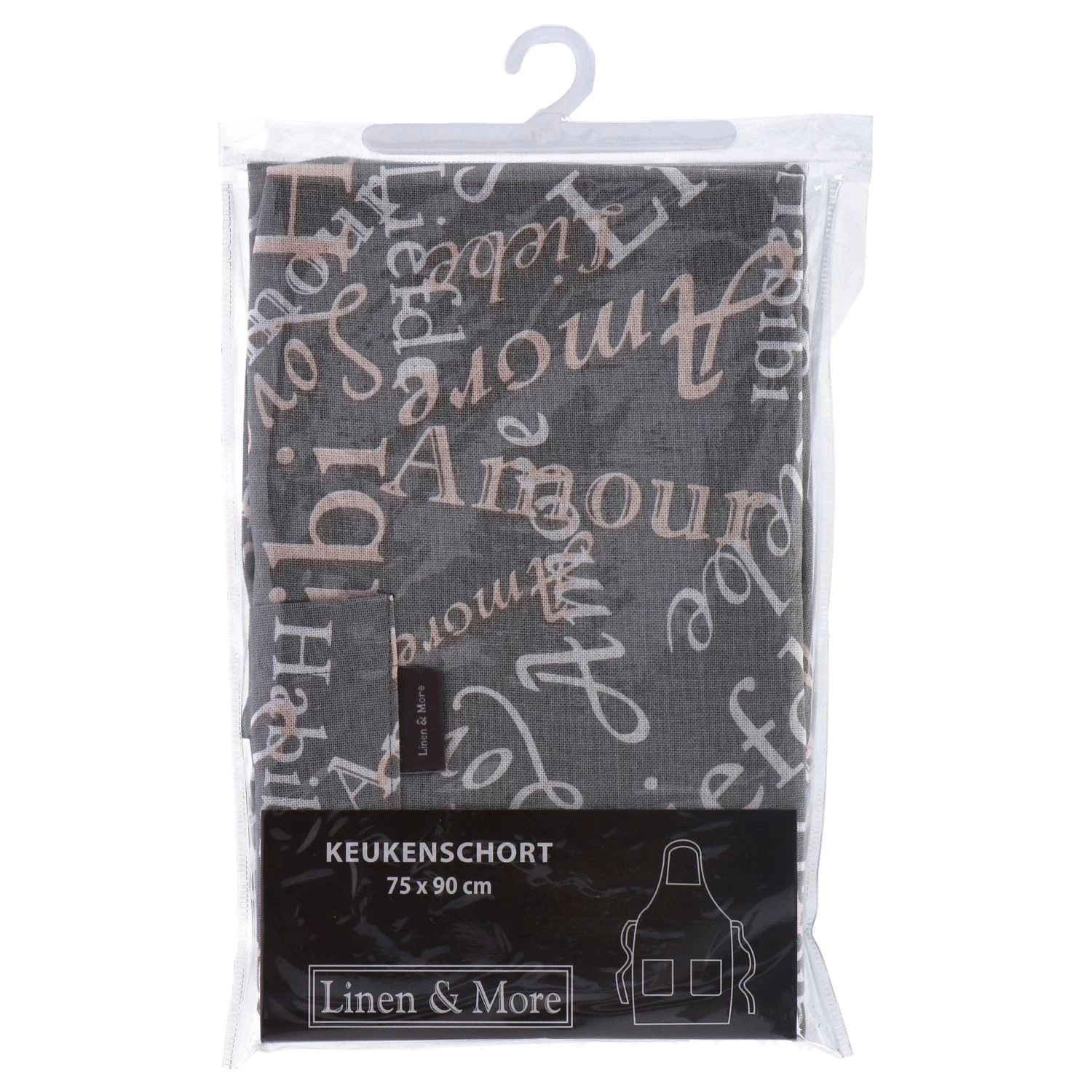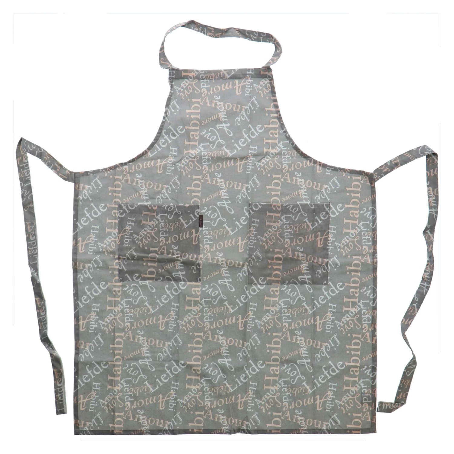 Sta altijd vrolijk in de keuken met dit leuke Schort grijs met tekst! Het schort heeft een neutrale grijze kleur, maar wordt helemaal hip door de witte teksten! Aan de voorkant zit een handig zakje waar je je telefoon, een recept of pollepel in kunt bewaren. Bind het schort om met een handige strik en je bent klaar om te koken!