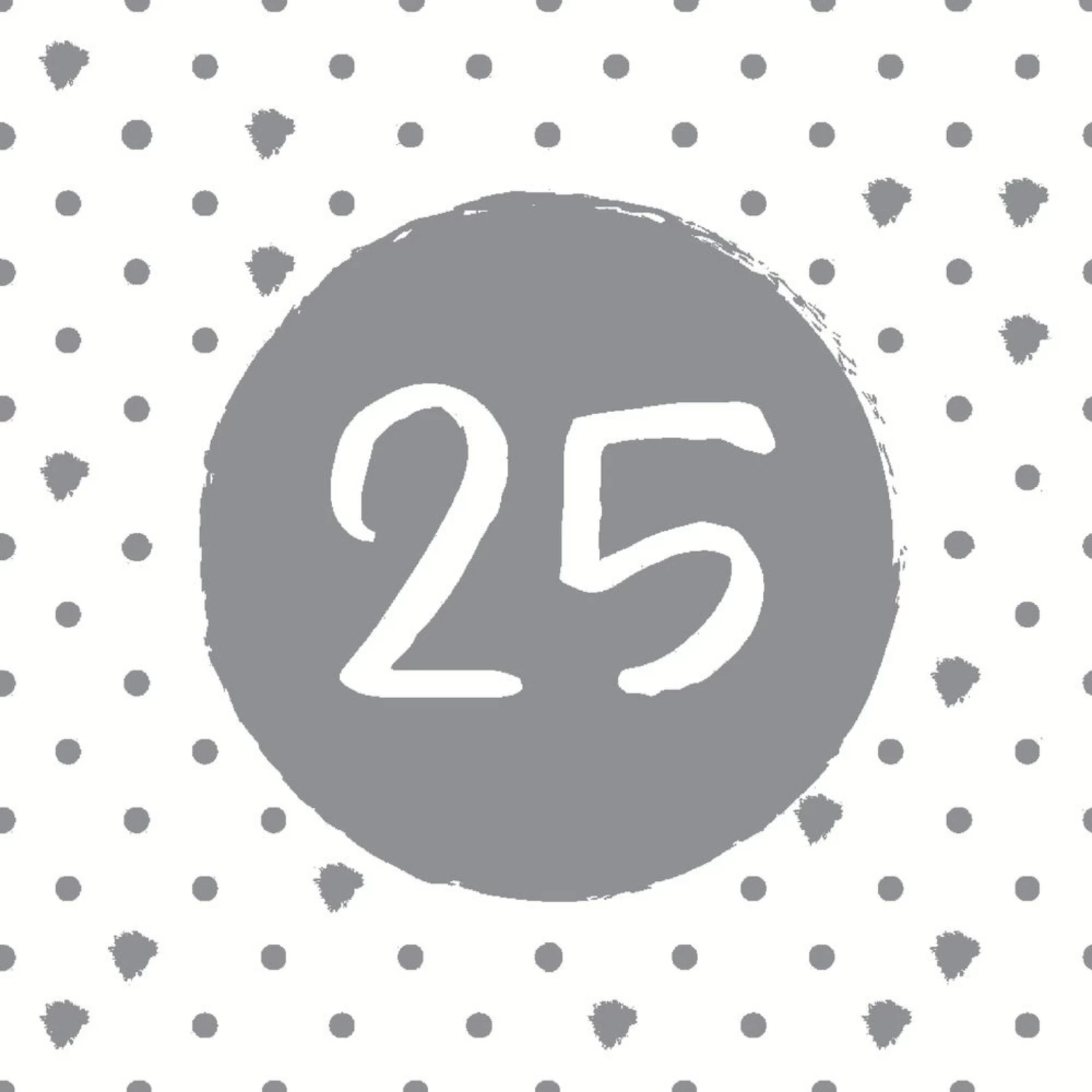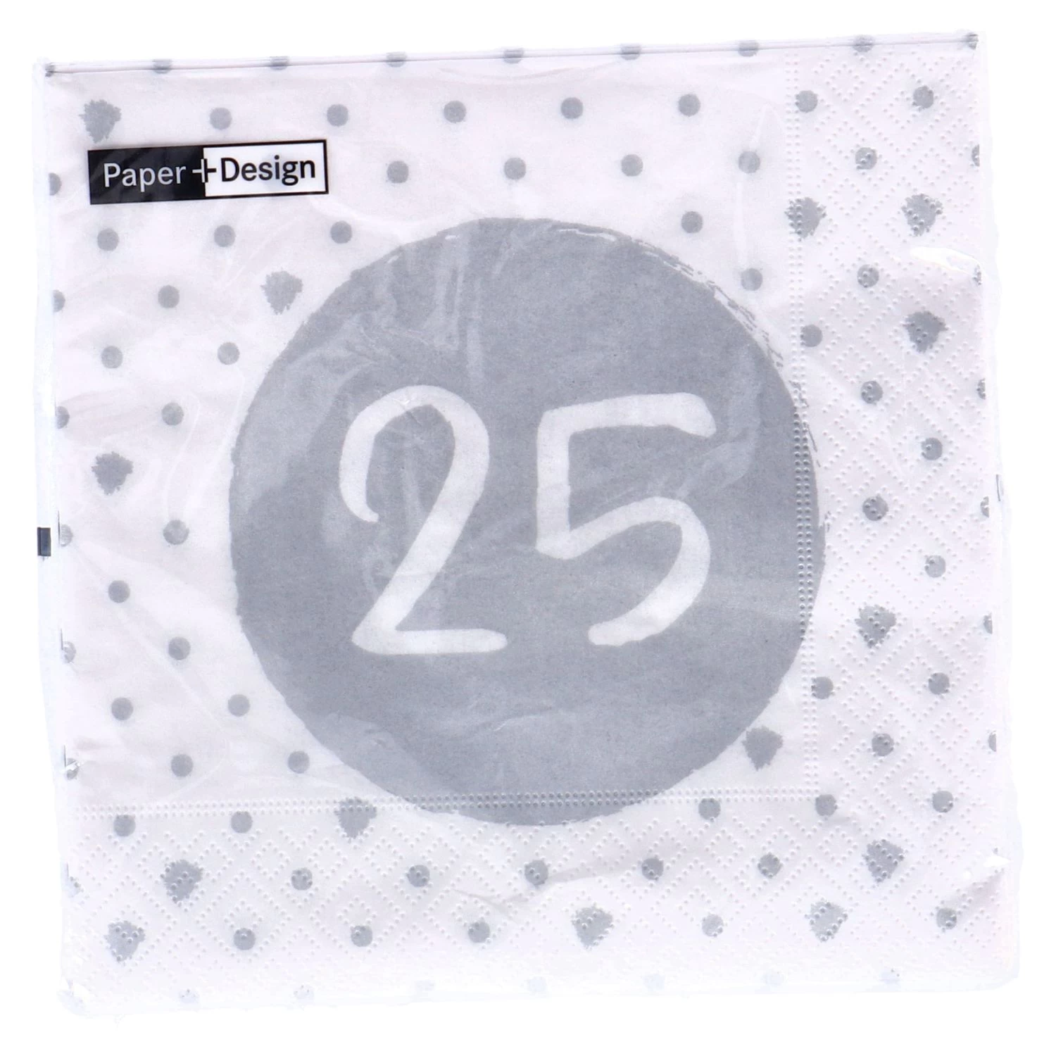 Servetten zijn een uitstekende manier om jouw eettafel net een beetje extra stijl mee te geven! Met deze Duni servetten, bedrukt met een elegant versiering en he getal 25 op wit papier, maak jij jouw gedekte tafel helemaal af! De servetten zijn gemaakt van 3-laags tissuepapier en hebben een formaat van 33cm. De verpakking bevat 20 servetten, zodat jij genoeg hebt voor iedereen!