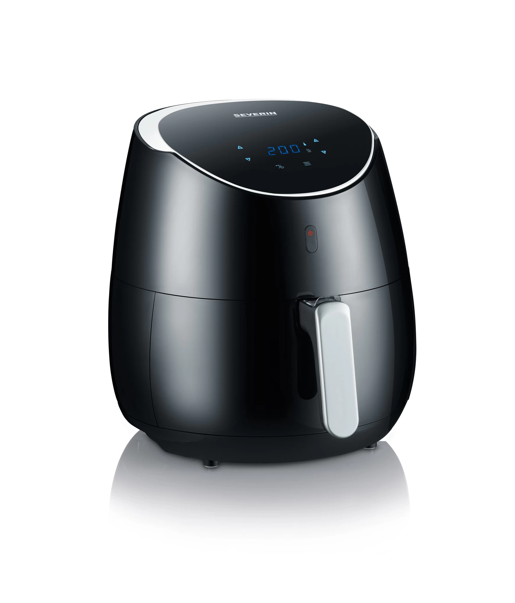 De zwarte ceramic Air Fryer van Severin zorgt voor een veelzijdige, gezonde en snelle bereiding zonder extra olie of vet. In de XXL-frituurmand met extra grote inhoud van ca. 5 liter is perfect voor de bereiding van grotere porties tot bijvoorbeeld 1,5 kg patat of zelfs een hele kip. De air fryer heeft 8 automatische programma’s voor de beste resultaten voor friet, vlees, kip, garnalen, groenten, vis en nog veel meer. De air fryer heeft een handig geheugenfunctie voor alle automatische programma’s en individuele instellingen. Individueel programmeerbare temperatuur en tijdinstelling, een