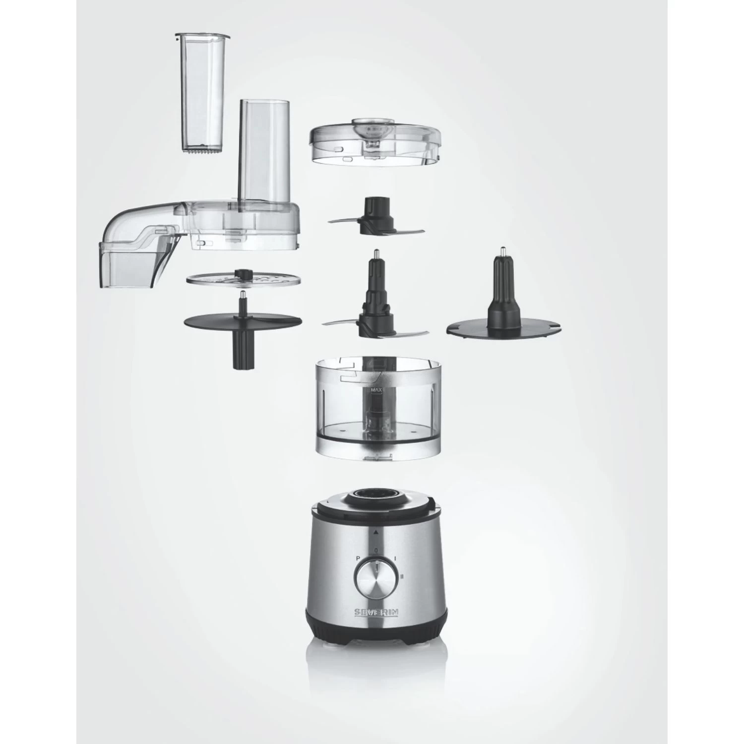 Deze Severin 4-in-1 multifunctionele hakmolen heeft een ruimtebesparend, roestvrijstalen ontwerp. Ook heeft de snijder een hoogwaardig 4-bladig roestvrijstalen mes op twee niveaus een innovatieve multi-hakschijf en afneembare onderdelen voor eenvoudige reiniging.
