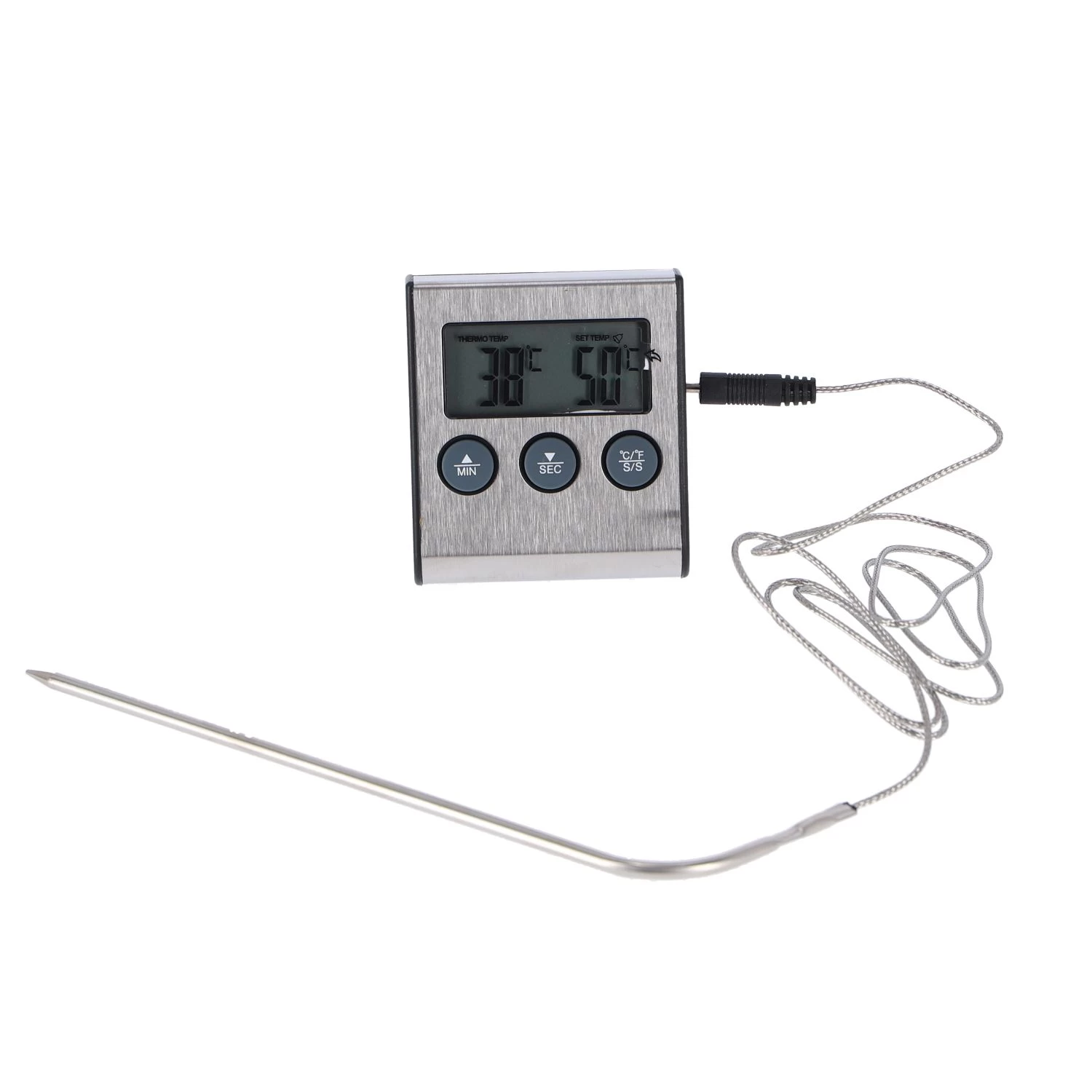 Meet de temperatuur van je vlees op de barbecue of in de pan eenvoudig op met deze digitale vleesthermometer. Stel een temperatuur in op de thermometer en steek de pin in het vlees, eenmaal op temperatuur zal er een alarm afgaan, waarbij je gewaarschuwd wordt. Aan de achterkant van de vleesthermometer zit een magneet zodat je het eenvoudig kunt ophangen.