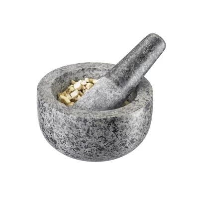 Deze stijlvolle Westmark vijzel met stamper van natuurlijk graniet is ideaal voor het gemakkelijk pletten en fijnstampen van diverse specerijen, harde kruidenblokjes en kruiden voor verse, gezonde gerechten. Met de vijzel kun je moeiteloos malen en pittige pasta’s en marinades bereiden met een vol aroma dankzij het ruwe oppervlak.